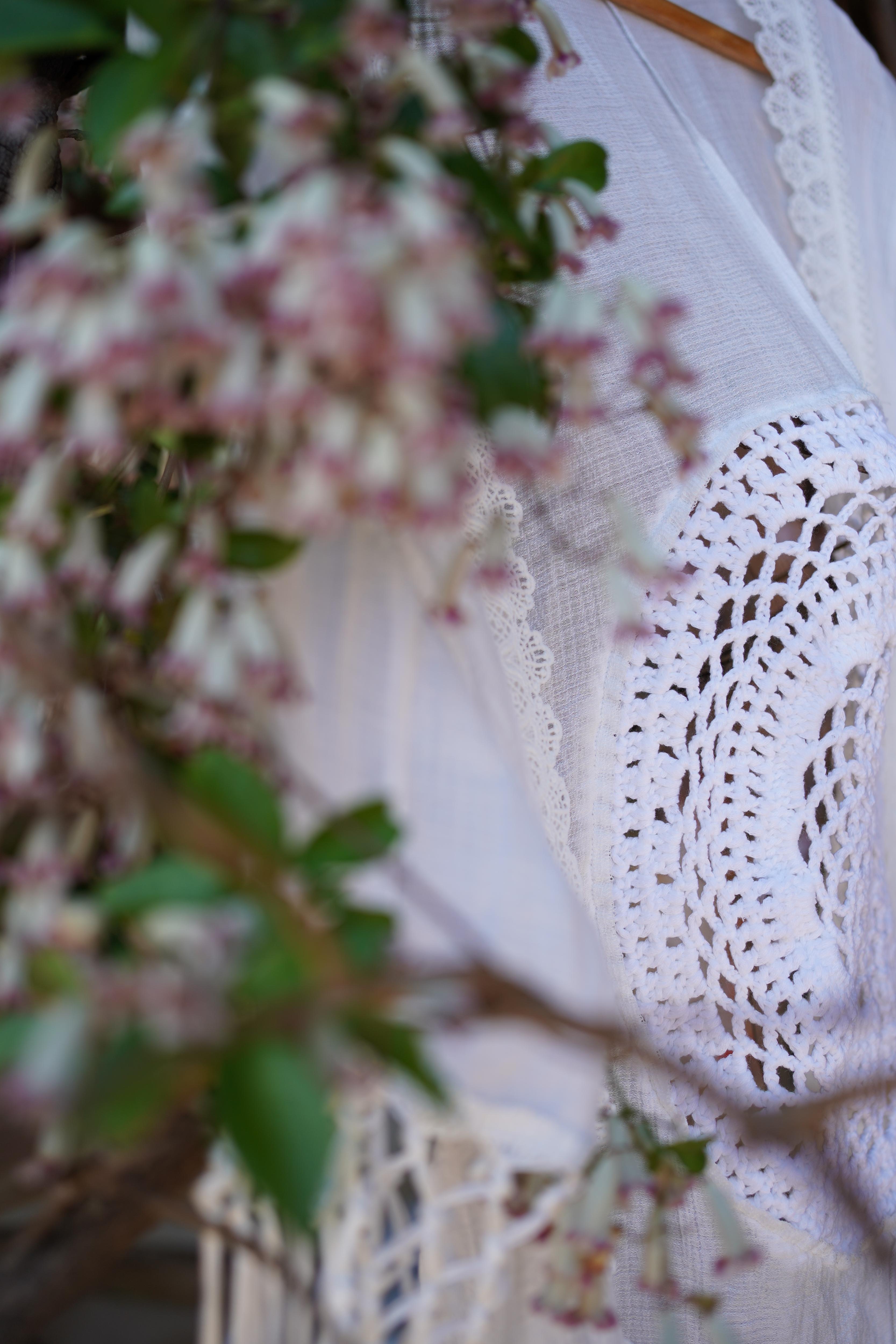 Embrace your inner bohemian goddess with our enchanting Luna featuring intricate crochet detailing.